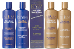 Nisim New Hair Biofactors is a botanically-derived hair care system of topically applied products formulated to help slow the effects of hair loss. These products do not require FDA approval since they don't contain drugs such as minoxidil or finasteride. Nisim New Hair Biofactors products have been shown to slow hair loss and improve hair growth in male or female pattern baldness (also known as androgenic alopecia). It also helps control hair loss related to post-pregnancy, menopause and cancer treatment.